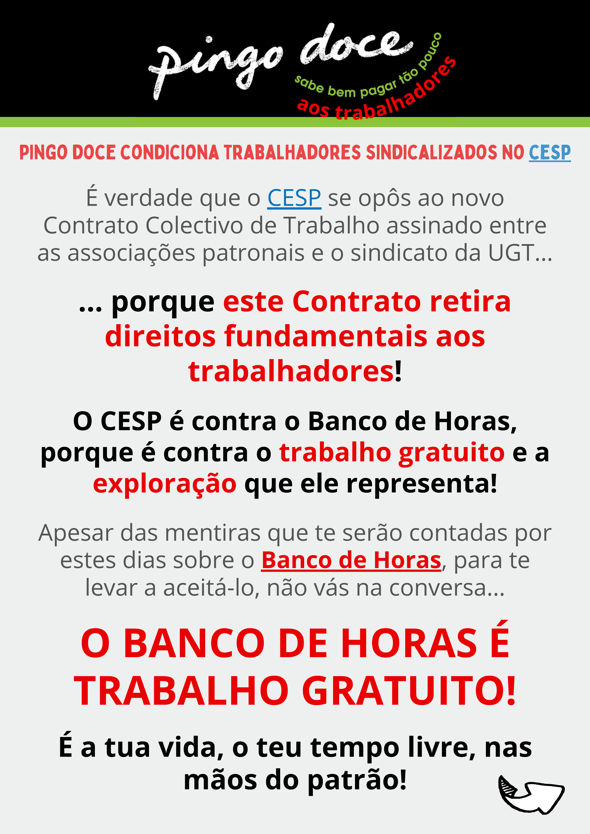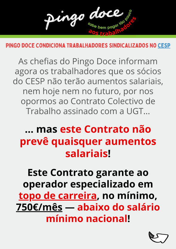 PINGO DOCE CONDICIONA TRABALHADORES SINDICALIZADOS NO CESP!