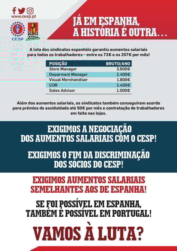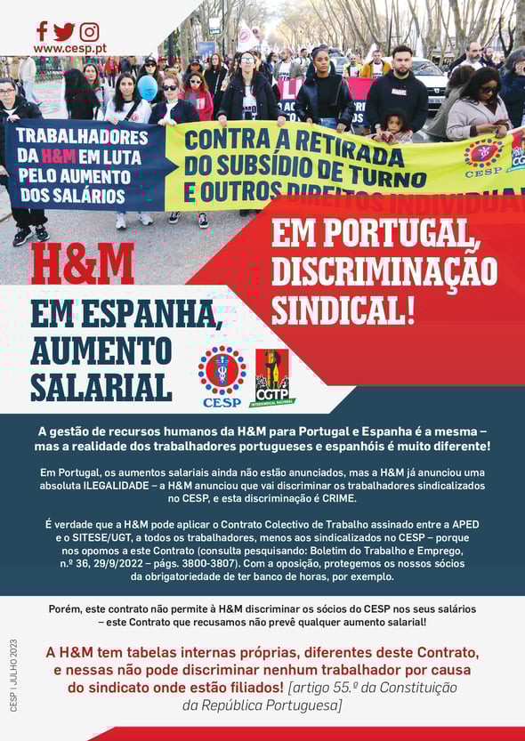 H&M: em Espanha, aumento salarial; em Portugal, discriminação sindical!