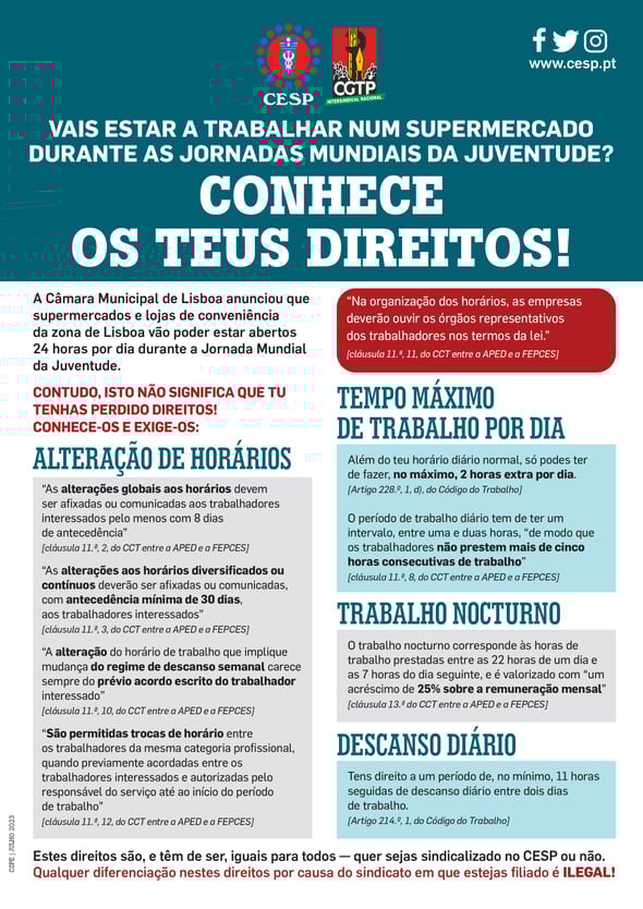 Vais estar a trabalhar num supermercado durante a Jornada Mundial da Juventude? CONHECE OS TEUS DIREITOS!