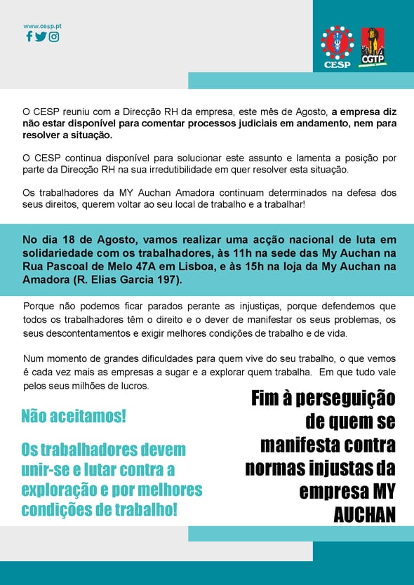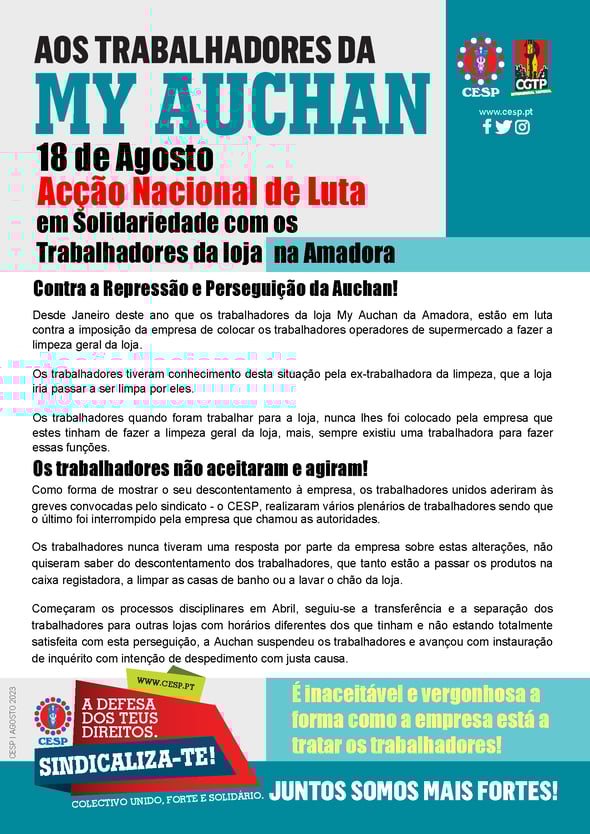 Aos trabalhadores da MY AUCHAN