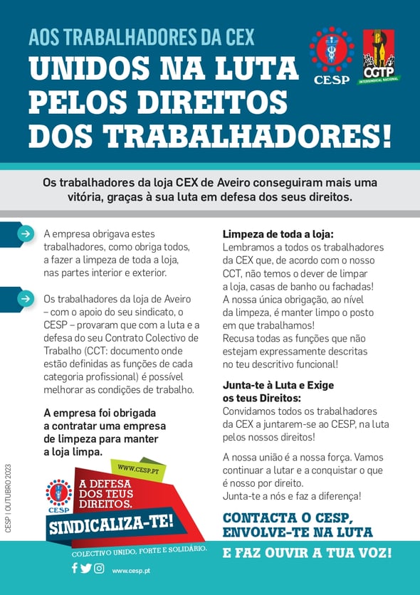 CEX: UNIDOS NA LUTA PELOS DIREITOS DOS TRABALHADORES!