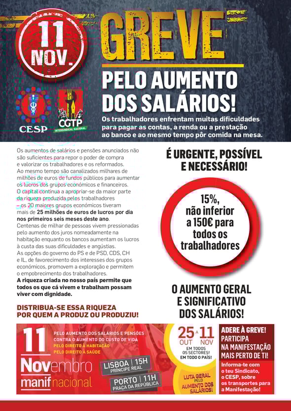 JUNTA-TE À LUTA GERAL PELO AUMENTO DOS SALÁRIOS!
