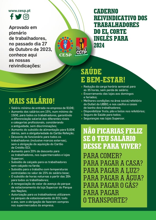 El Corte Inglés: Caderno Reivindicativo dos Trabalhadores para 2024