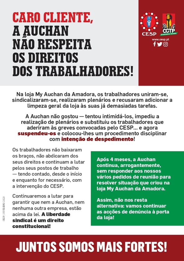 Caro cliente, a Auchan não respeita os direitos dos trabalhadores!