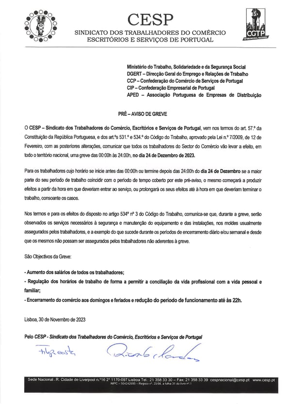 Pré aviso de Greve - 24 de Dezembro - Se