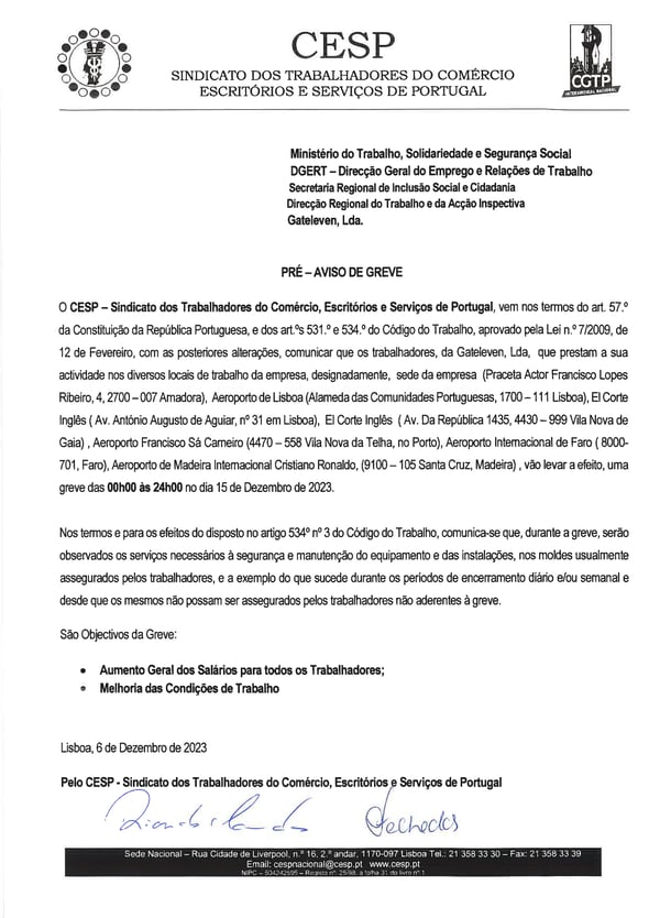 GATELEVEN: Pré-aviso de Greve | 15 DEZEMBRO