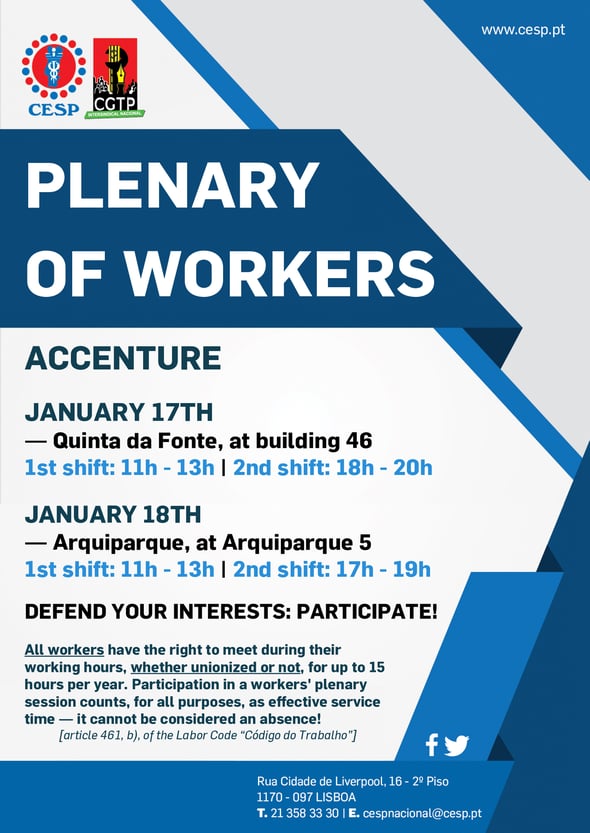 JANUARY 17TH & 18TH | ACCENTURE WORKERS' PLENARY MEETING