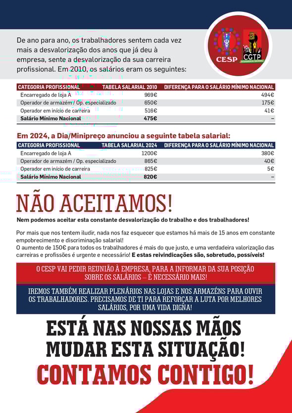 OS TRABALHADORES DA DIA/MINIPREÇO NÃO PODEM ESTAR CONDENADOS AOS BAIXOS SALÁRIOS!