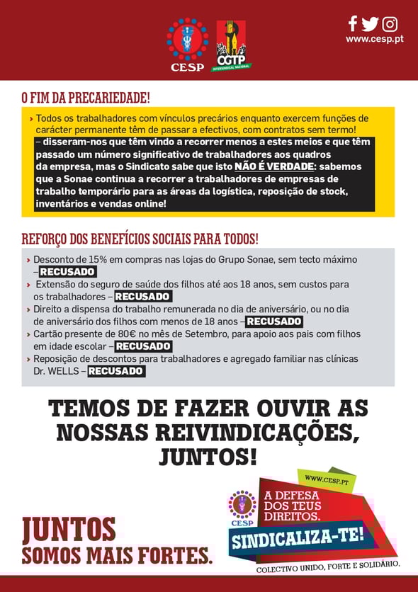 SONAE RECUSA TODAS AS REIVINDICAÇÕES DOS TRABALHADORES!