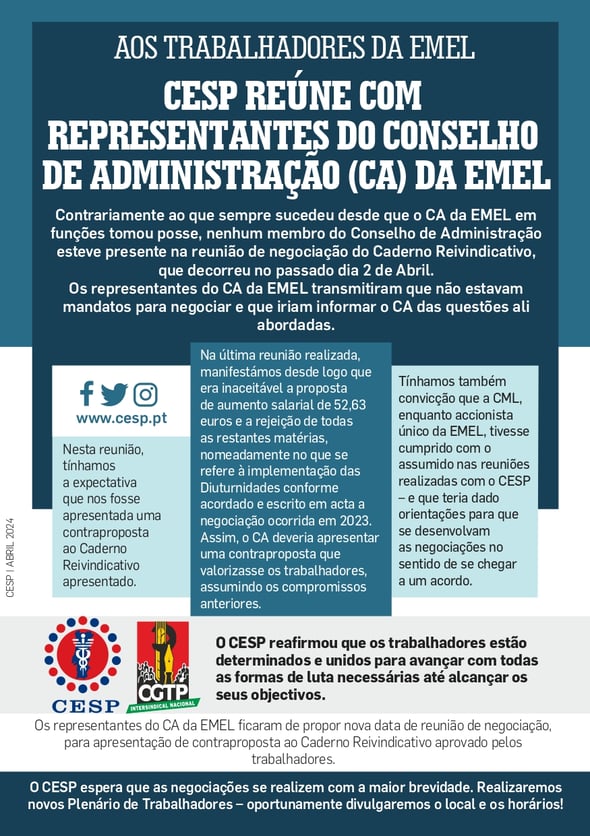 CESP REÚNE COM REPRESENTANTES DO CONSELHO DE ADMINISTRAÇÃO (CA) DA EMEL