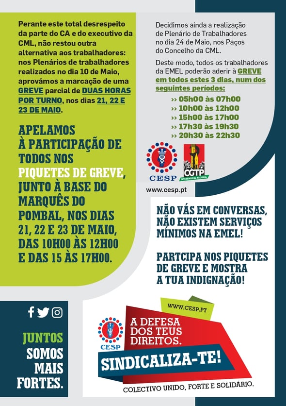 GREVE PARCIAL DOS TRABALHADORES DA EMEL: 21, 22 E 23 DE MAIO