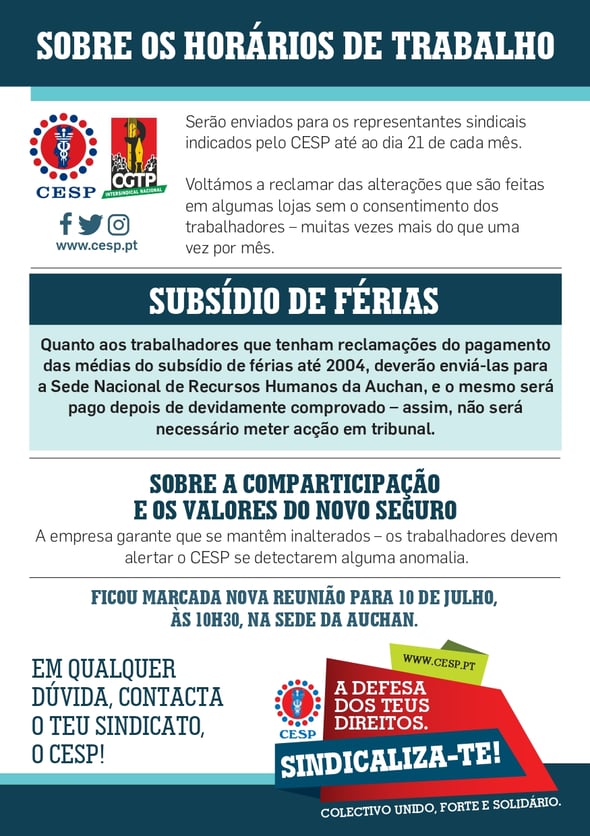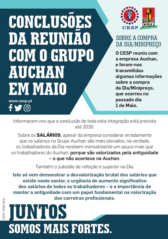 CONCLUSÕES DA REUNIÃO COM O GRUPO AUCHAN EM MAIO