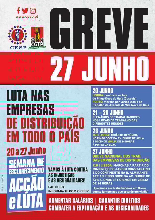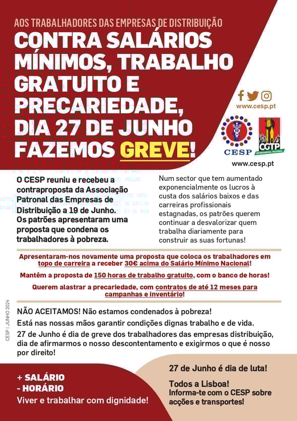 CONTRA SALÁRIOS MÍNIMOS, TRABALHO GRATUITO E PRECARIEDADE, DIA 27 DE JUNHO FAZEMOS GREVE!