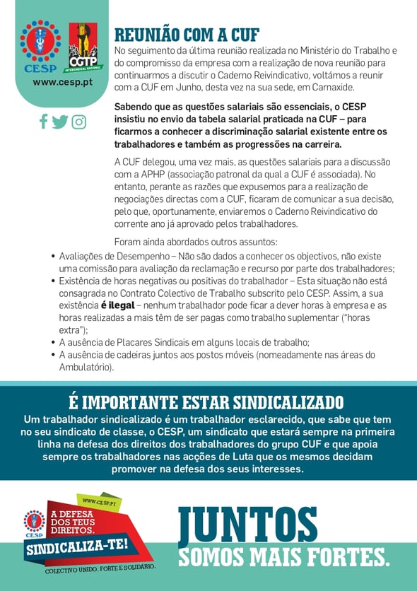 TRABALHADORES E O CESP TINHAM RAZÃO! TRIBUNAL OBRIGA CUF A PAGAR DIUTURNIDADES!