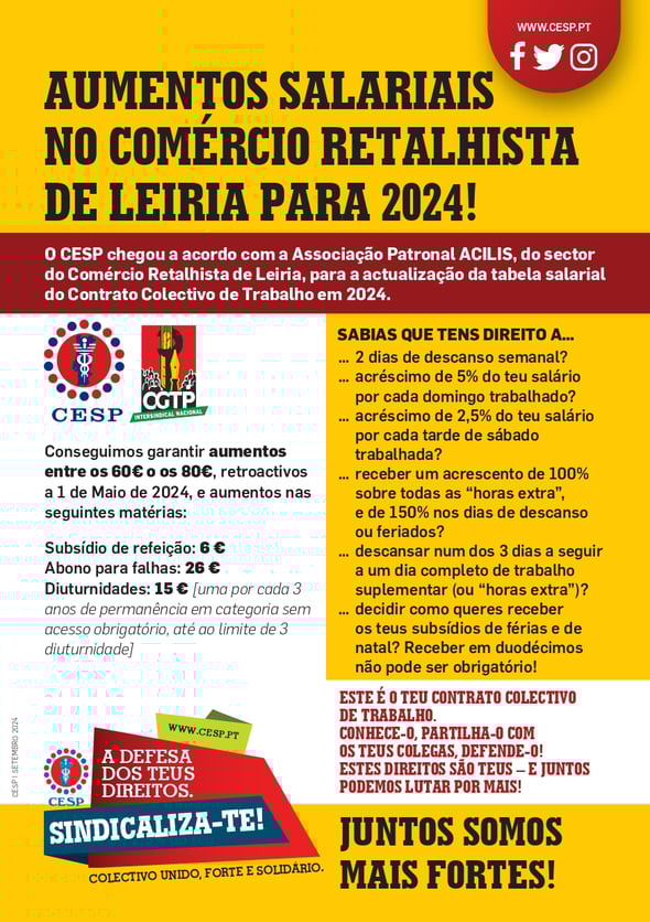 AUMENTOS SALARIAIS NO COMÉRCIO RETALHISTA DE LEIRIA PARA 2024!