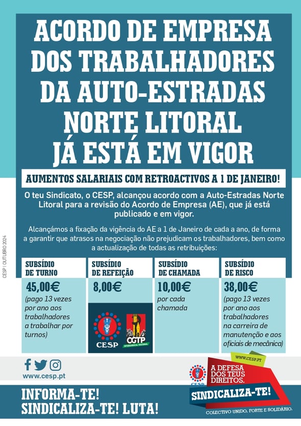 ACORDO DE EMPRESA DOS TRABALHADORES DA AUTO-ESTRADAS NORTE LITORAL JÁ ESTÁ EM VIGOR