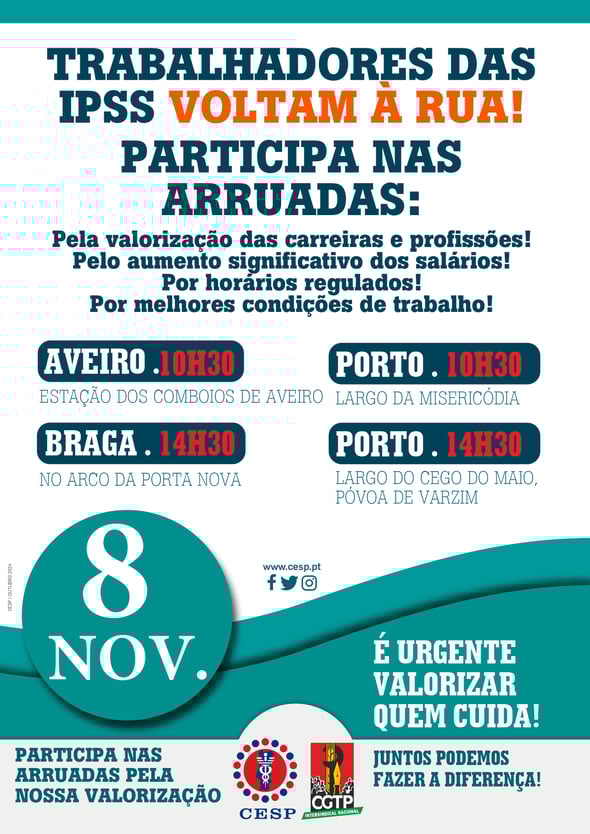 8 NOVEMBRO | TRABALHADORES DAS IPSS VOLTAM À RUA!