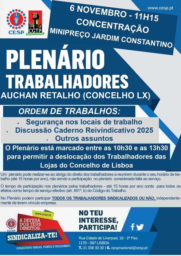 6 NOVEMBRO | 11H15 | PLENÁRIO DE TRABALHADORES DO AUCHAN