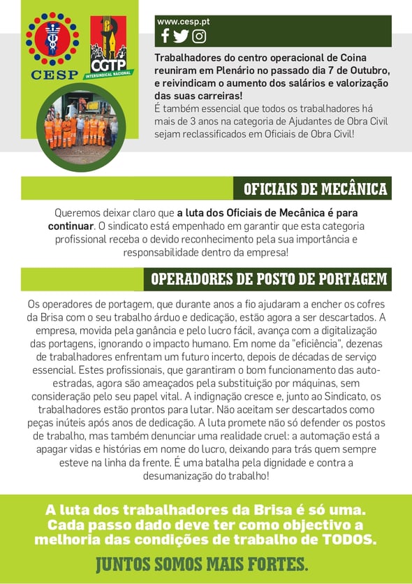 A LUTA DOS TRABALHADORES DA BRISA TEM MESMO DE CONTINUAR!