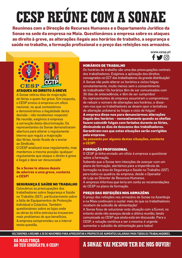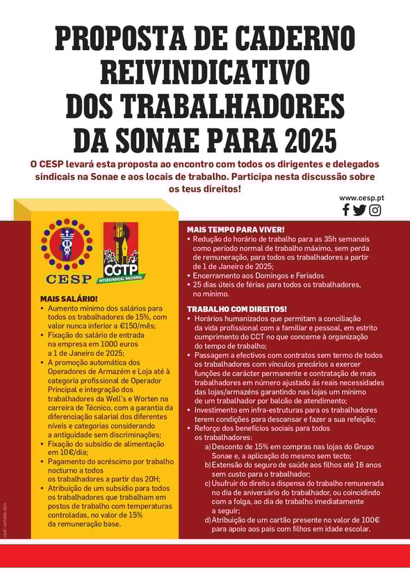 PROPOSTA DE CADERNO REIVINDICATIVO DOS TRABALHADORES DA SONAE PARA 2025 // CESP REÚNE COM A SONAE