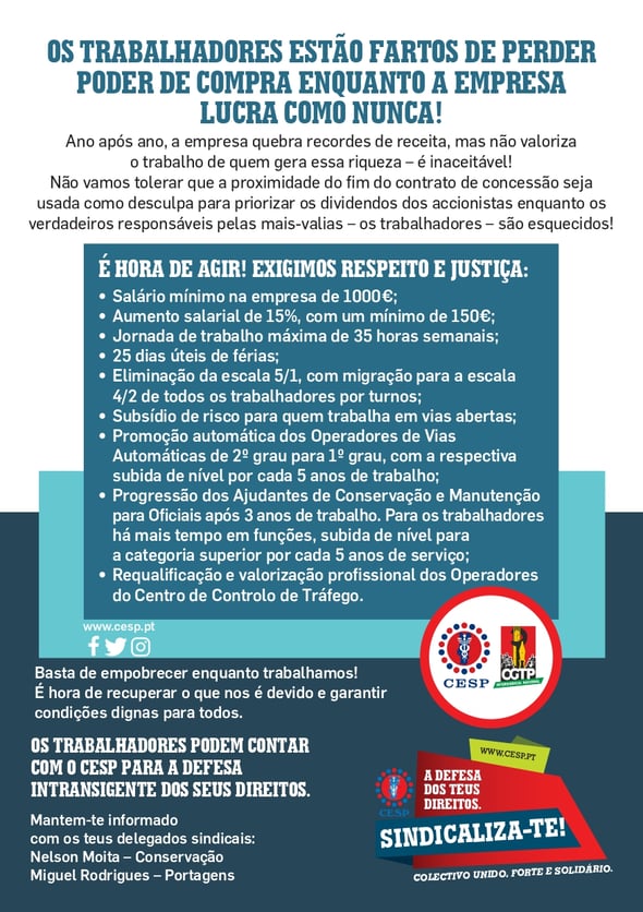 BASTA DE ADIAMENTOS! A AUTO-ESTRADAS DO ATLÂNTICO TEM DE REVER O ACT PARA 2025!