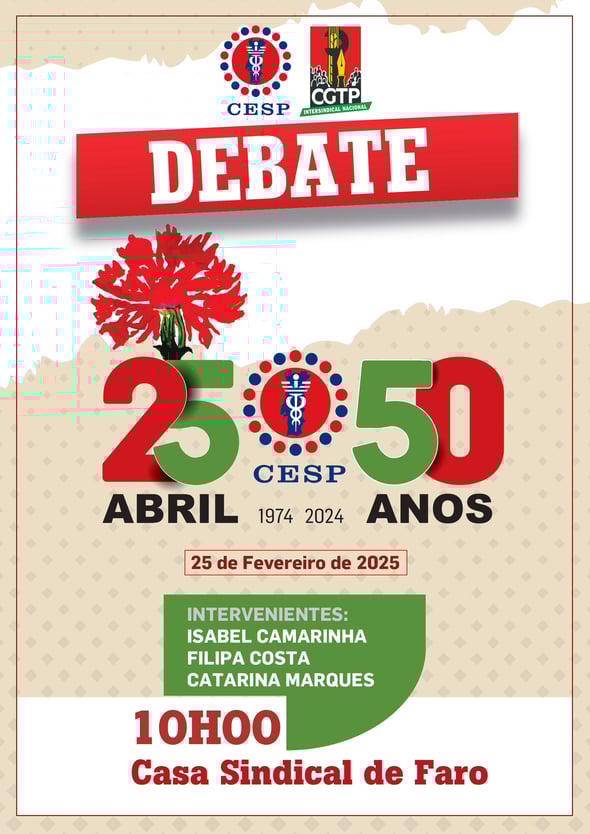 25 FEVEREIRO | DEBATE | 50 ANOS DO 25 DE ABRIL | CASA SINDICAL DE FARO | 10H00