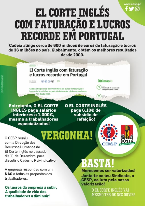 EL CORTE INGLÉS COM FATURAÇÃO E LUCROS RECORDE EM PORTUGAL... ENQUANTO PAGA SALÁRIOS INFERIORES A 1.000€