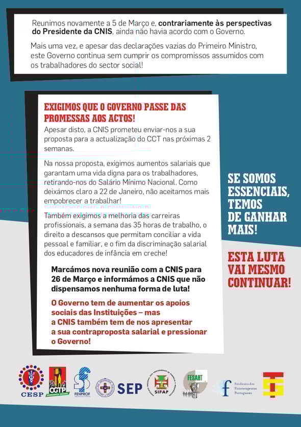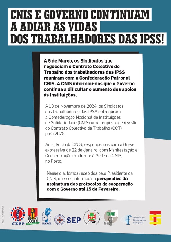 CNIS E GOVERNO CONTINUAM A ADIAR AS VIDAS DOS TRABALHADORES DAS IPSS!