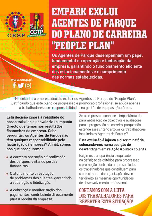 EMPARK EXCLUI AGENTES DE PARQUE DO PLANO DE CARREIRA "PEOPLE PLAN"