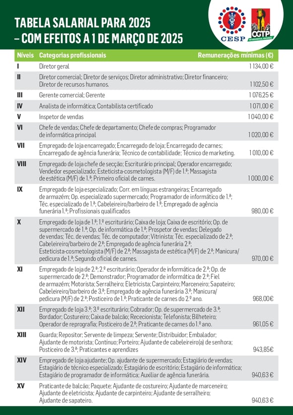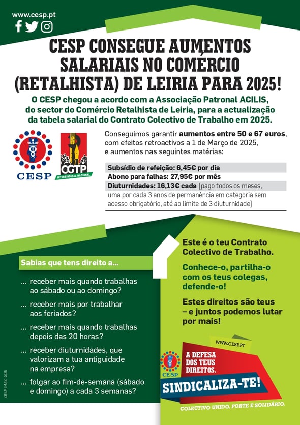 CESP CONSEGUE AUMENTOS SALARIAIS NO COMÉRCIO (RETALHISTA) DE LEIRIA PARA 2025!