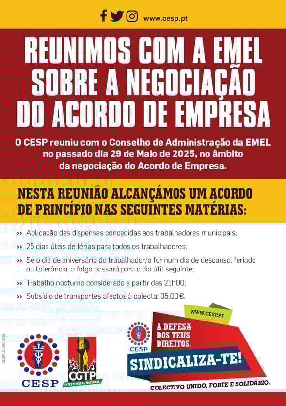 REUNIMOS COM A EMEL SOBRE A NEGOCIAÇÃO DO ACORDO DE EMPRESA