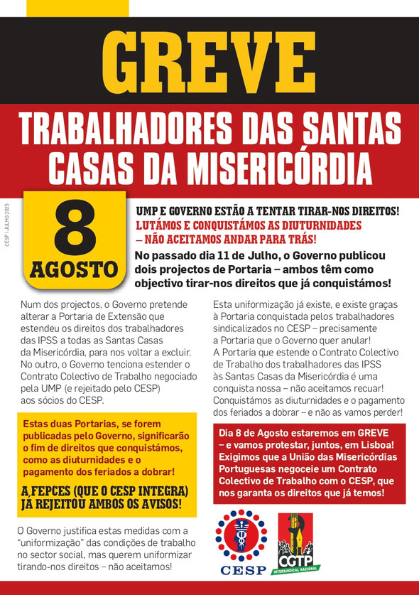 8 AGOSTO | GREVE | TRABALHADORES DAS SANTAS CASAS DA MISERICÓRDIA