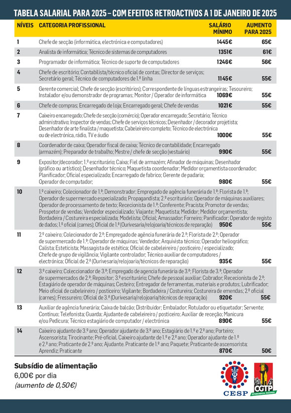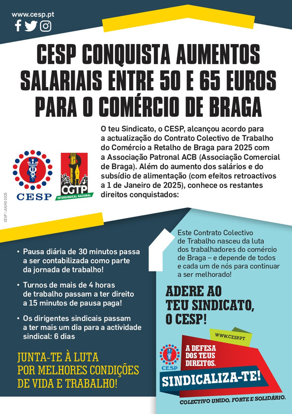 CESP CONQUISTA AUMENTOS SALARIAIS ENTRE 50 E 65 EUROS PARA O COMÉRCIO DE BRAGA