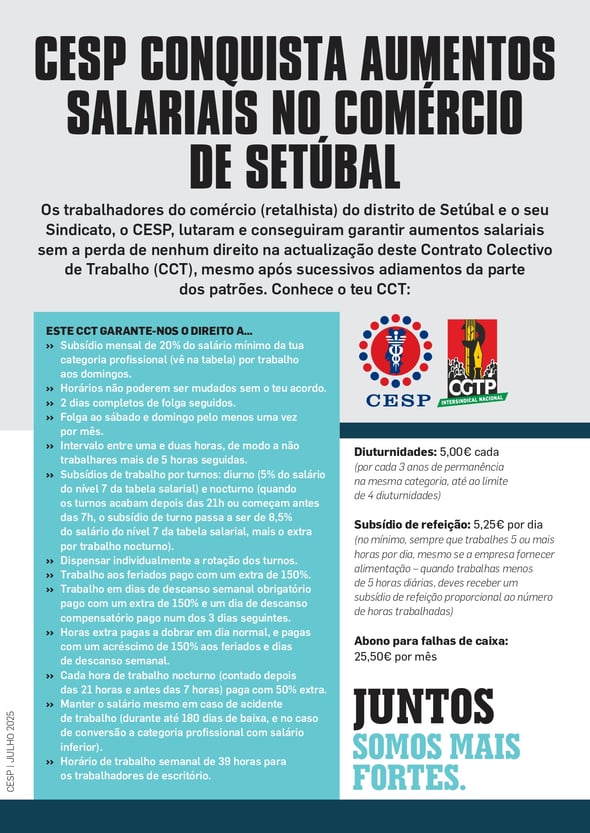 CESP CONQUISTA AUMENTOS SALARIAIS NO COMÉRCIO DE SETÚBAL