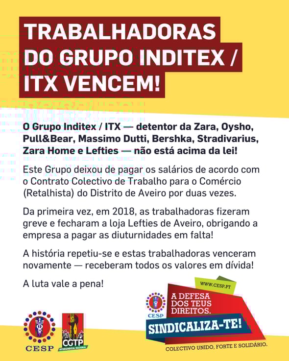 Trabalhadoras do Grupo inditex / ITX vencem!