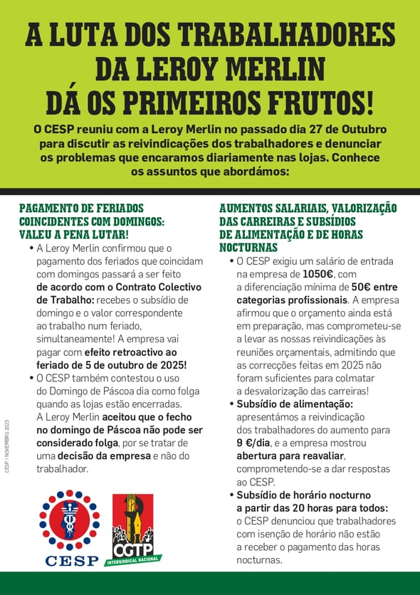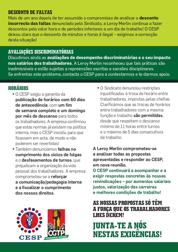 A LUTA DOS TRABALHADORES DA LEROY MERLIN DÁ OS PRIMEIROS FRUTOS!