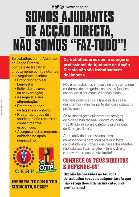 SOMOS AJUDANTES DE ACÇÃO DIRECTA, NÃO SOMOS “FAZ-TUDO”!