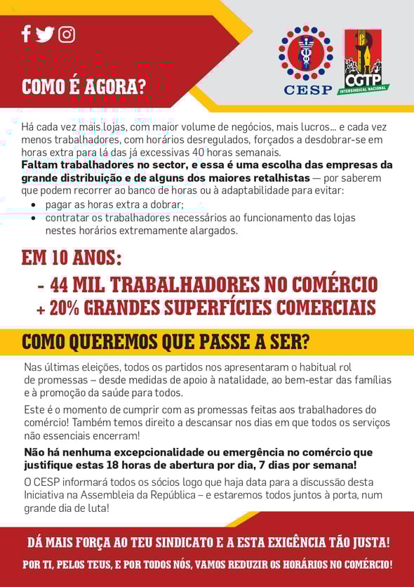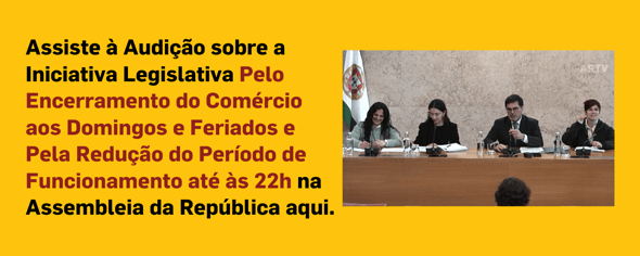 Conhece os resultados da votação no Parlamento aqui: CONCENTRAÇÃO EM FRENTE À ASSEMBLEIA DA REPÚBLICA DURANTE O DEBATE SOBRE OS HORÁRIOS DO COMÉRCIO