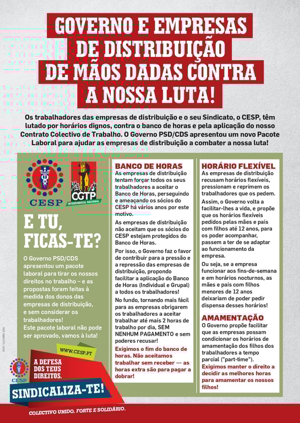 Contrato Coletivo de Trabalho entre a Associação Patronal APED (Associação Portuguesa de Empresas de Distribuição) e a FEPCES (Federação Portuguesa dos Sindicatos do Comércio, Escritórios e Serviços — que o CESP integra) e outros Sindicatos.