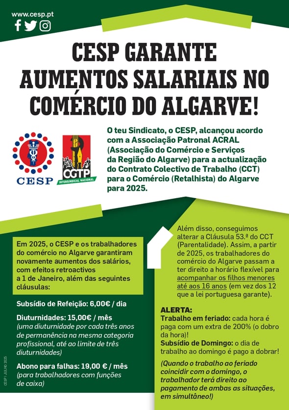 Contrato Coletivo de Trabalho entre a Associação Patronal ACRAL (Associação do Comércio e Serviços da Região do Algarve) e o CESP (Sindicato dos Trabalhadores do Comércio, Escritórios e Serviços de Portugal) e outros Sindicatos.
