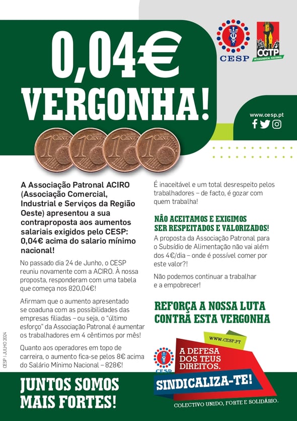 Contrato Colectivo de Trabalho entre a Associação Patronal ACIRO (Associação Comercial, Industrial e Serviços da Região Oeste) e o CESP (Sindicato dos Trabalhadores do Comércio, Escritórios e Serviços de Portugal) e outra Associação Sindical.