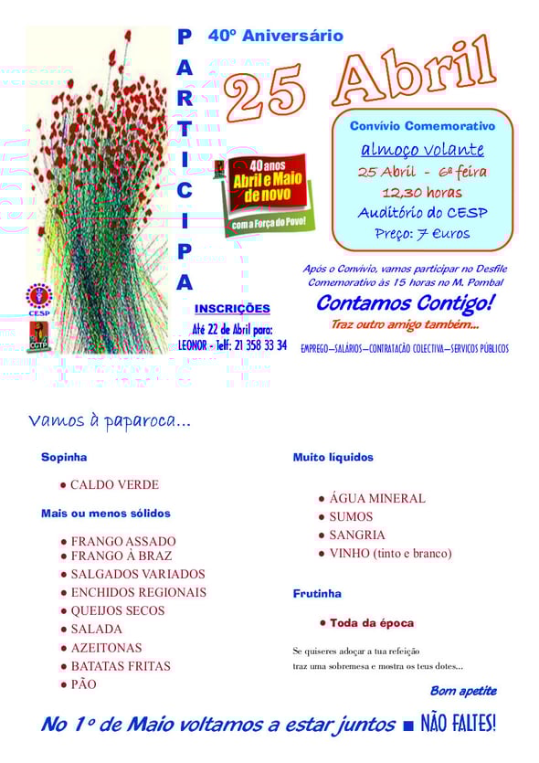 O CESP NAS COMEMORAÇÕES POPULARES DO 25 DE ABRIL
