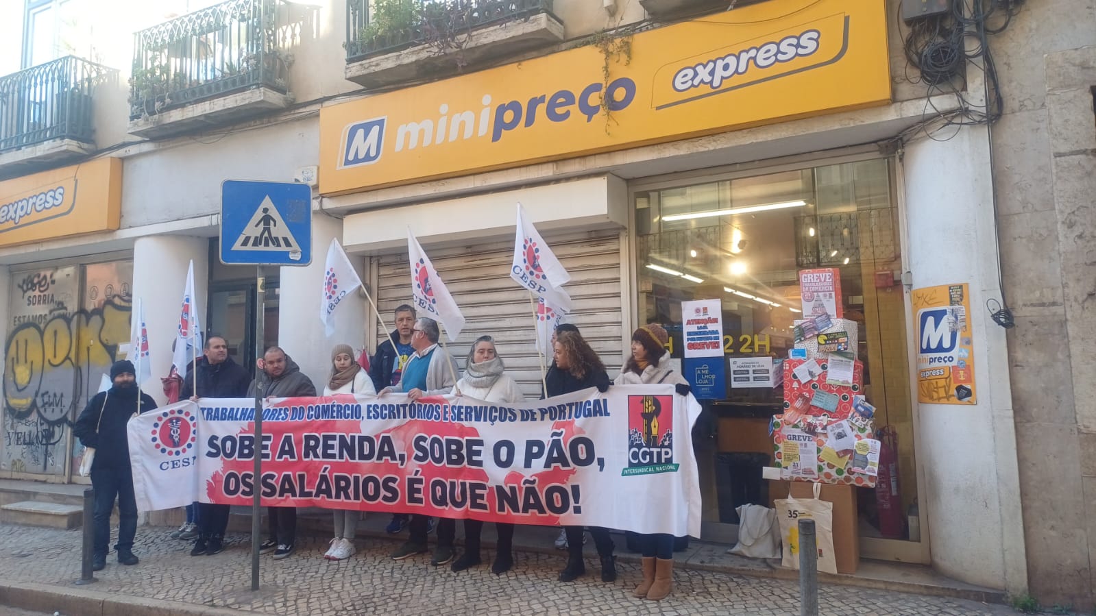 Piquete de Greve em Lisboa, na loja Dia/Minipreço de São Bento, em directo na RTP 1: