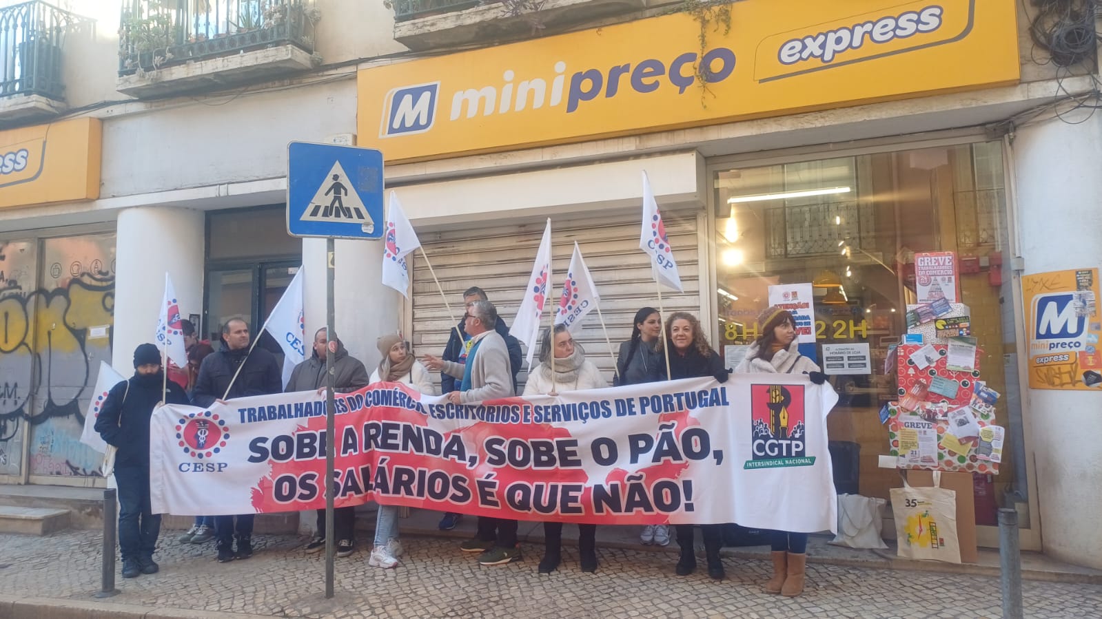 A mensagem da Presidente da Direção Nacional do CESP, Filipa Costa, a partir do Piquete de Greve do Minipreço de São Bento, encerrado por motivo de Greve, em Lisboa: