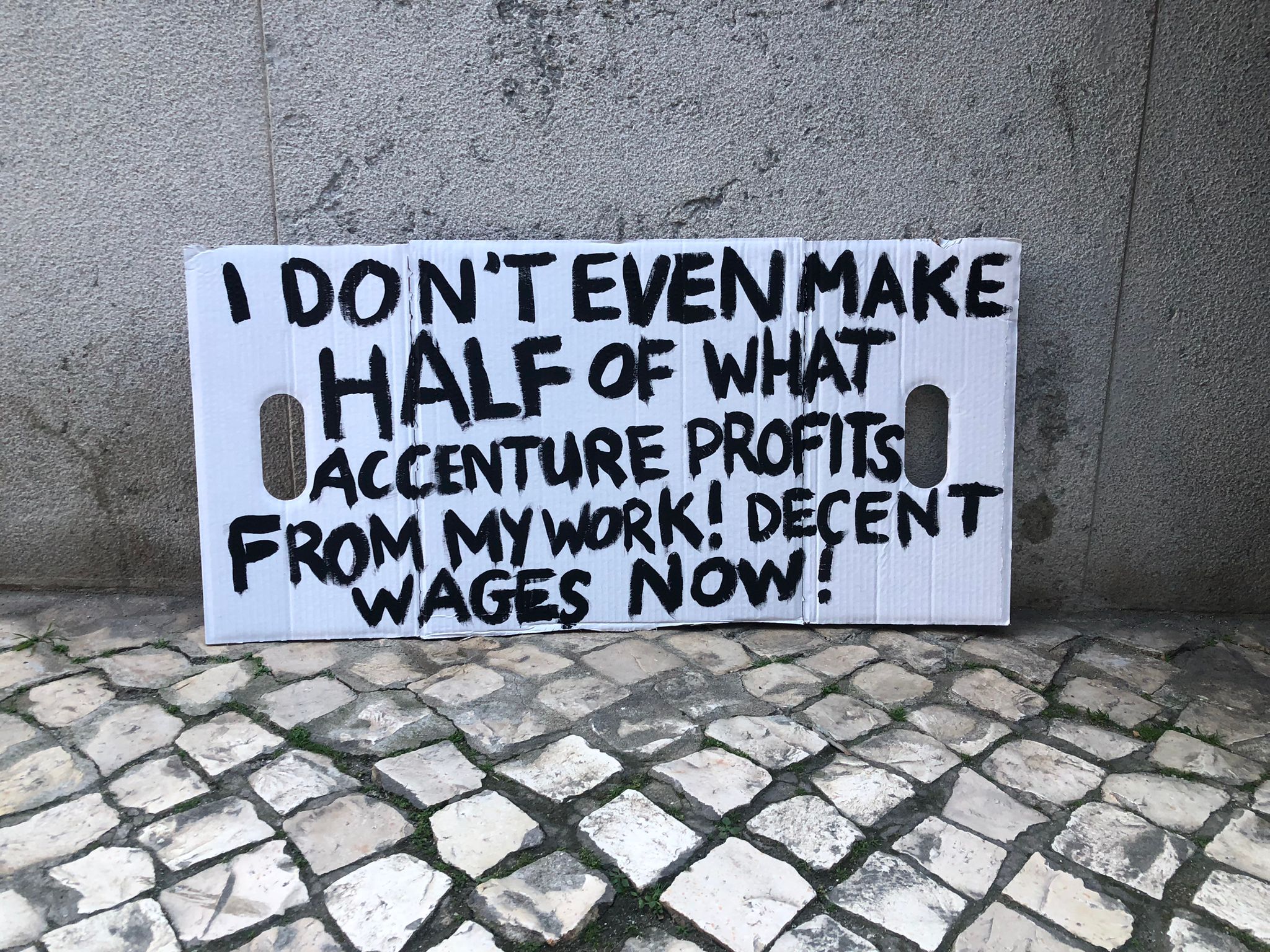 O auto-proclamado “bom ambiente de trabalho” não substitui a necessidade, muito real, de concretizar aumentos salariais na Accenture. Exigimos o aumento dos salários em 15%, com um aumento mínimo de 150 euros, para todos os trabalhadores, bem como o aumento do subsídio de alimentação para os 12 euros!