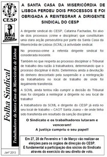 A dirigente sindical do CESP, Catarina Fachadas, foi alvo de dois processos (crime e disciplinar) que constituíram uma clara acção persecutória por parte da Santa Casa da Misericórdia de Lisboa