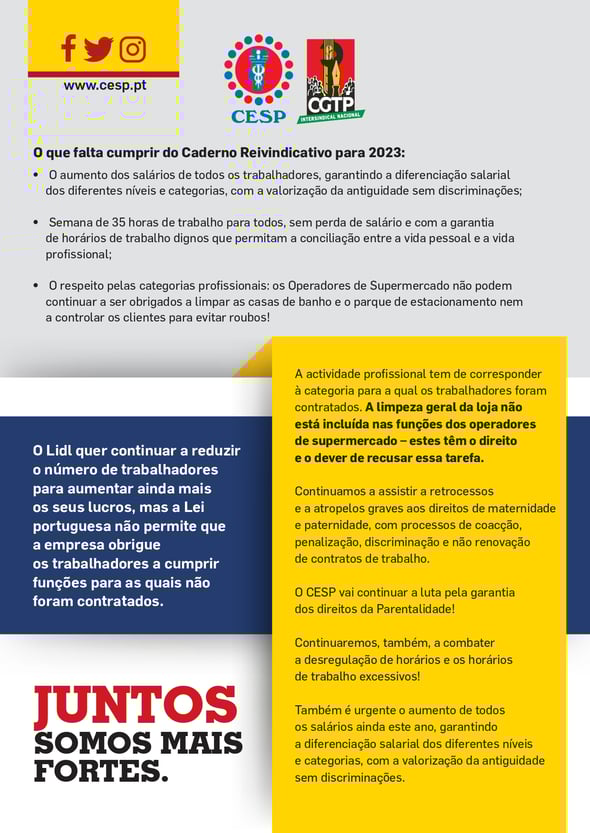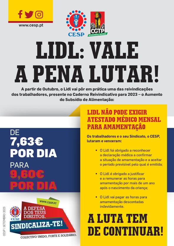 O CESP, tomando conhecimento do ocorrido e prontamente remeteu o assunto à administração nacional do Lidl, exigindo uma resolução célere e justa.