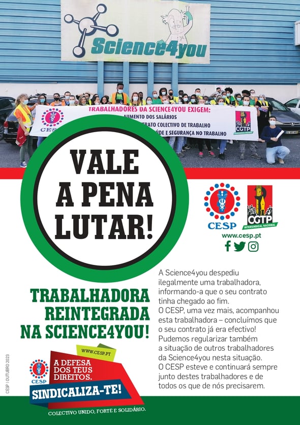 Vale a pena lutar! Junta-te ao teu sindicato de classe! Sindicaliza-te no CESP!